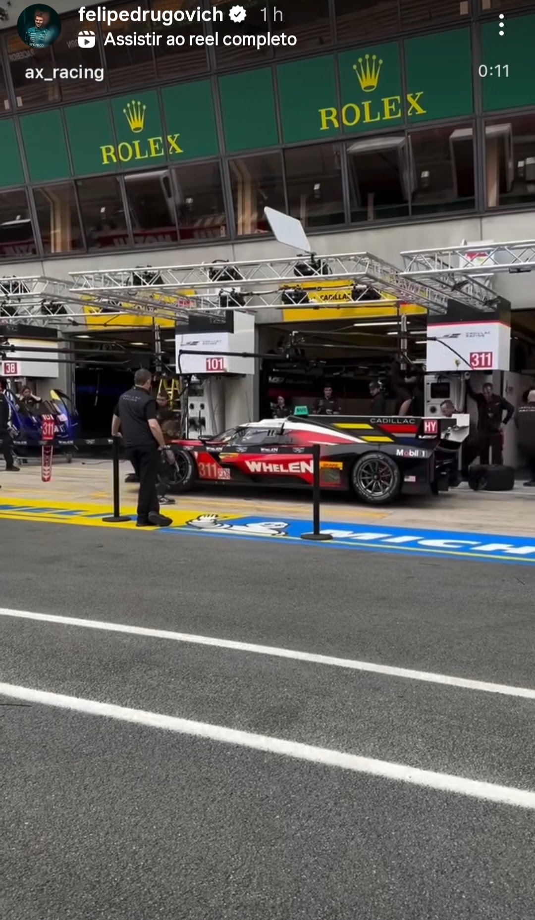E colocando mais combustível nas especulações e se corre ou não a próxima etapa do calendário da F1, o brasileiro compartilhou em suas redes um vídeo em que mostra o carro #311, que pilotará ao lado de Pipo Derani e Jack Aitken, da Whelen nas garagens do circuito francês. Na filmagem, os mecânicos fazem um teste de pit-stop.