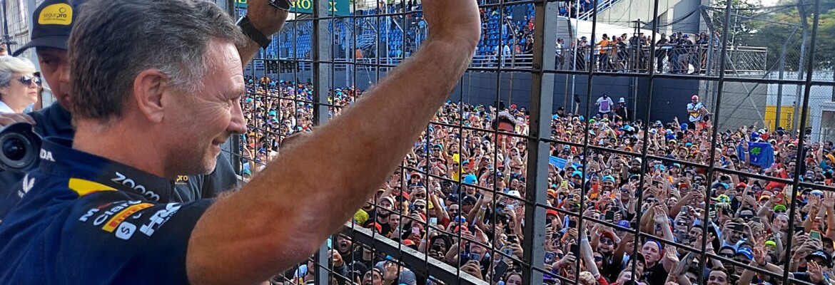 Christian Horner viveu uma tarde mágica de GP de São Paulo da F1. Na corrida realizada neste domingo (5), o chefe da Red Bull viu Max Verstappen vencer de ponta a ponta e ainda foi comemorar com o público.