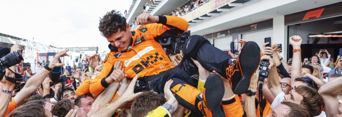 Lando Norris alcançou sua primeira vitória na F1. Após 110 corridas, o titular da McLaren enfim fez sua estrela brilhar e subiu ao degrau mais alto do pódio no GP de Miami após imprimir ritmo verdadeiramente impressionante durante a prova do último domingo (5).