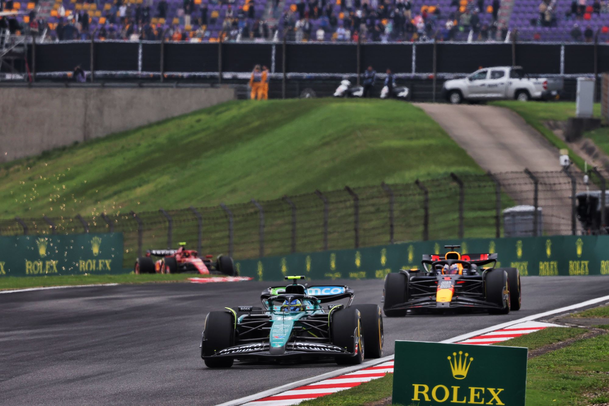 Além disto, outra situação marcou o dia, que foi o acidente do Carlos Sainz, que bateu no Q2, causou uma bandeira vermelha, mas ainda assim conseguiu voltar para os boxes, trocou o bico, fez volta rápida, passou para o Q3 e largará da sétima posição.