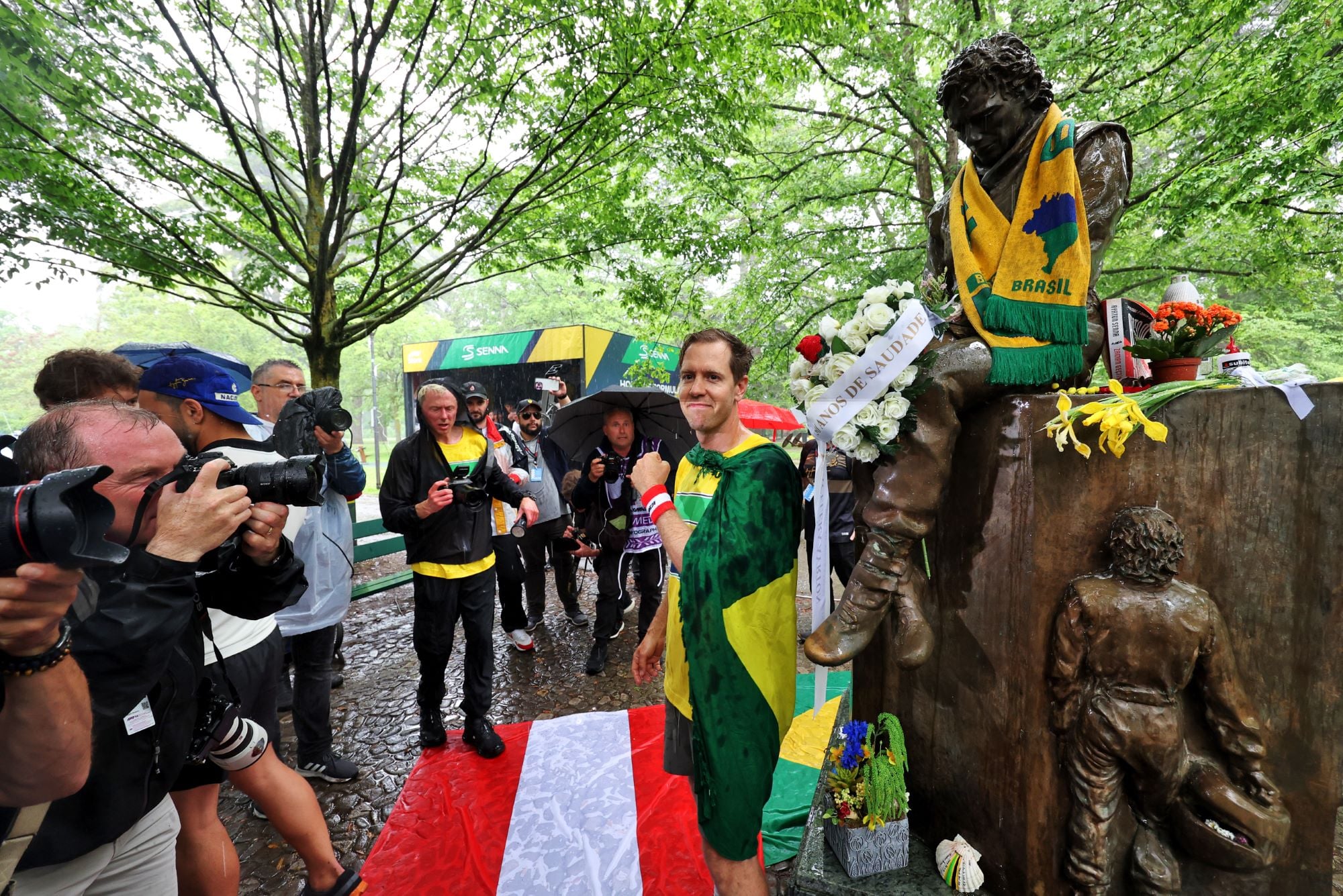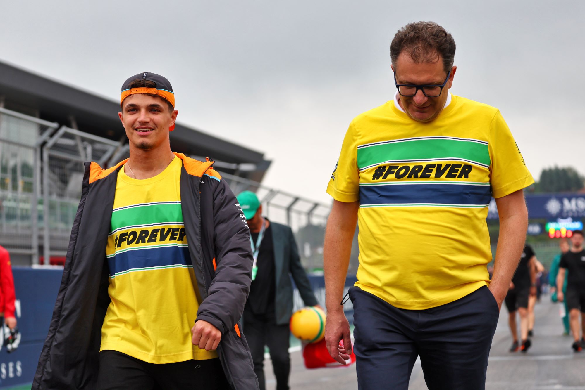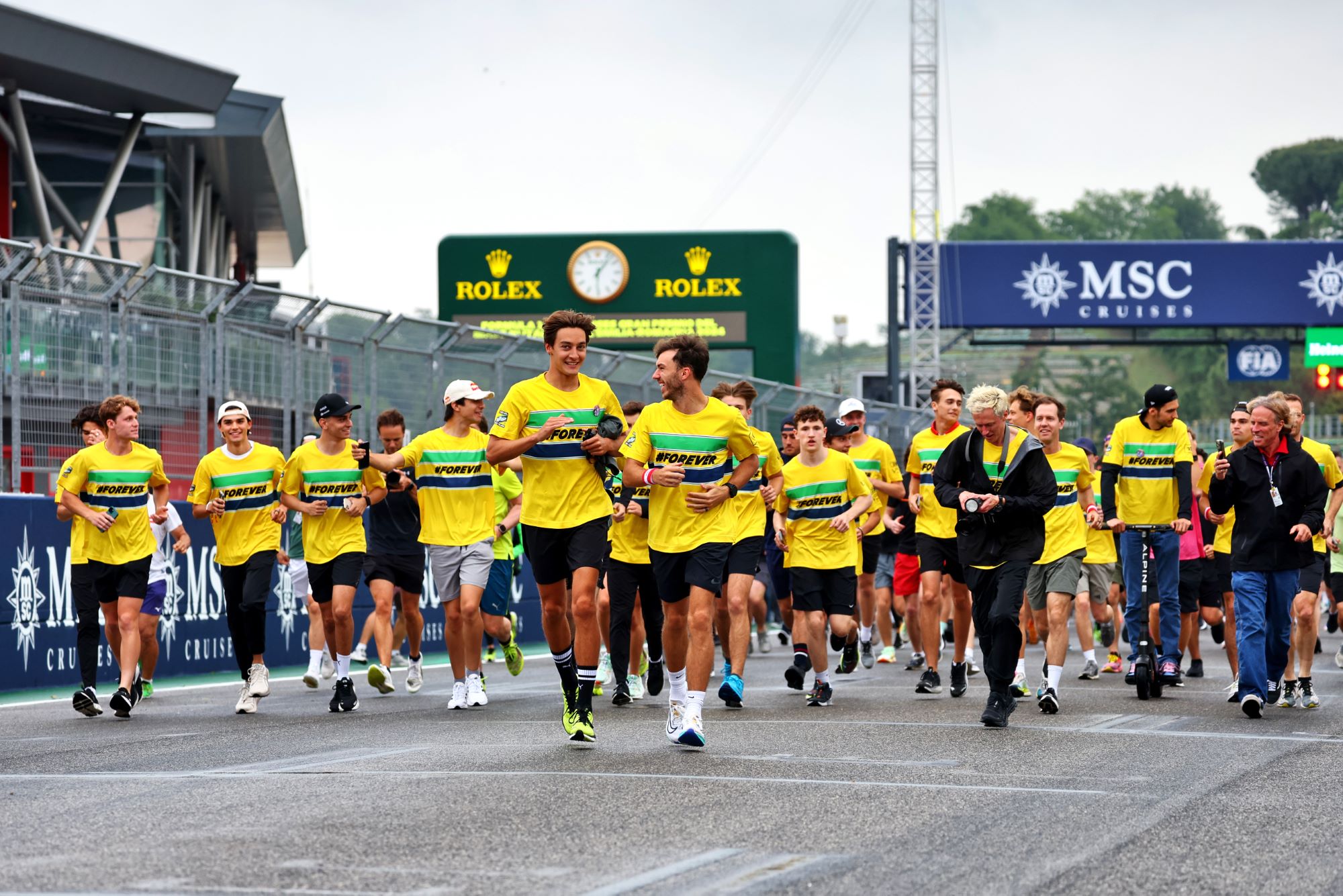 Todos os pilotos do grid da Fórmula 1 participaram do tributo, segurando as bandeiras do Brasil e da Áustria, em uma demonstração de respeito e memória aos pilotos. Além disso, a maioria dos pilotos e figuras públicas presentes vestiam uma camisa com a inscrição “#forever”, simbolizando a lembrança eterna aos heróis do esporte.