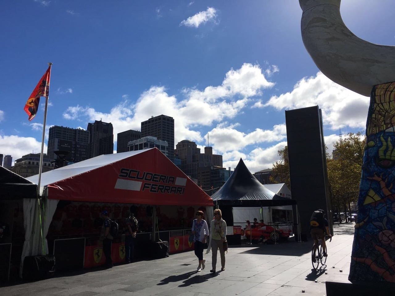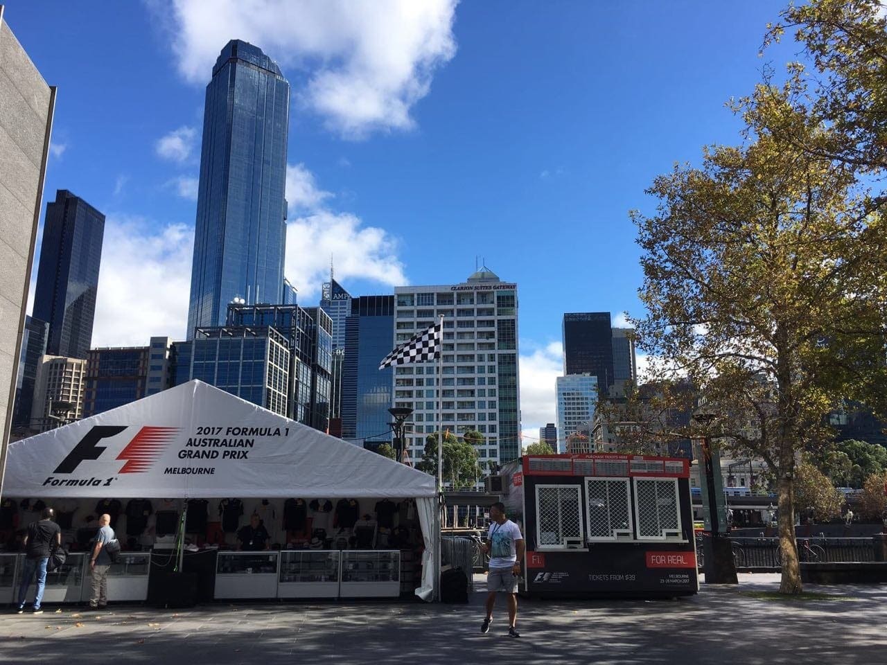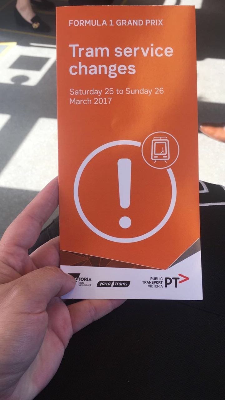 Tendas com produtos da Fórmula 1 são montadas no centro da cidade além de anúncios sobre as operações do transporte público e propagandas com o rosto do ídolo local Daniel Ricciardo espalhados por todas as partes. Há todo um esquema especial de transporte público para o evento, tudo contido em um flyer distribuído aos turistas, claro, gratuitamente.