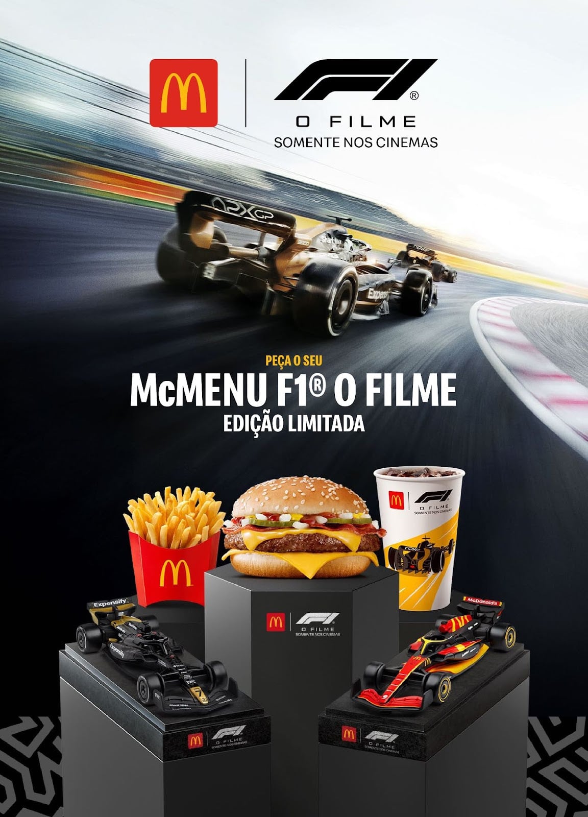 Unindo duas grandes paixões — o sabor de Méqui e o universo da velocidade — o McDonald’s, patrocinador oficial da Fórmula 1® na América Latina, anuncia um reforço de peso: o McMenu F1® O Filme, uma edição limitada, com o novo Quarterão com Bacon e duas miniaturas exclusivas de carros que celebram a adrenalina das pistas e o clima do longa que estreia esta semana. A novidade chega aos restaurantes da rede em todo o Brasil a partir de 25 de junho.