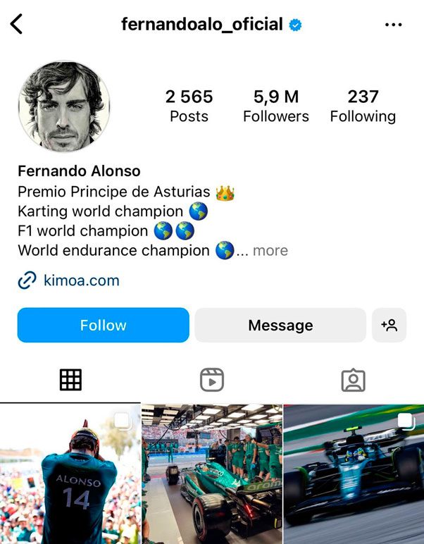 6. Fernando Alonso (@fernandoalo_oficial)