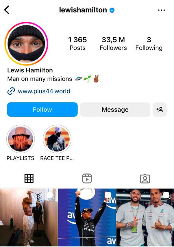 1. Lewis Hamilton (@lewishamiton)