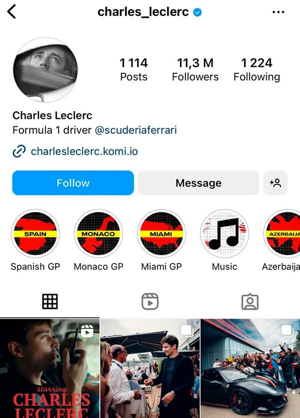 Charles Leclerc (@charles_leclerc) com 11,2 milhões de seguidores ficou com o segundo lugar em pilotos mais seguidos no Instagram. Leclerc concordou com uma prorrogação do contrato com a Ferrari e continuará competindo pela equipe até o final de 2024.