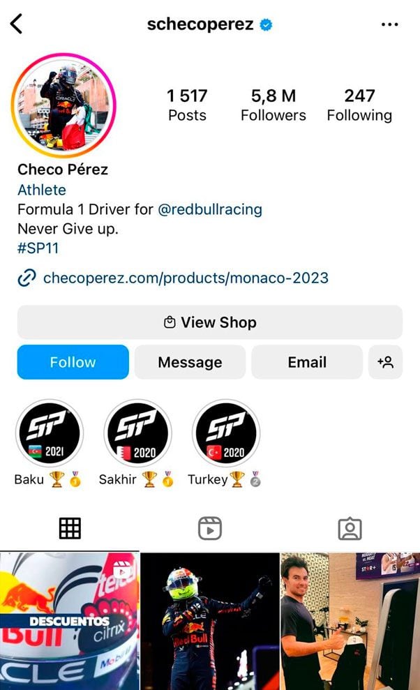 7. Sergio Pérez (@checoperez)