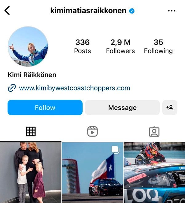 10. Kimi Raikkonen (@kimimatiasraikkonen)