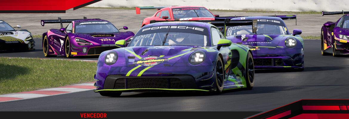 O F1BC GT3 Competizione chegou ao circuito de Barcelona para sua quarta etapa da temporada 2024/2, nesta terça-feira (23), em uma corrida de 60 minutos que pegou fogo em todas as psoições e fechou com grande vitória de Edinho Amaro (BraClean eSports Racing), segurando toda pressão de Rapha Souza (Rosso eSports).