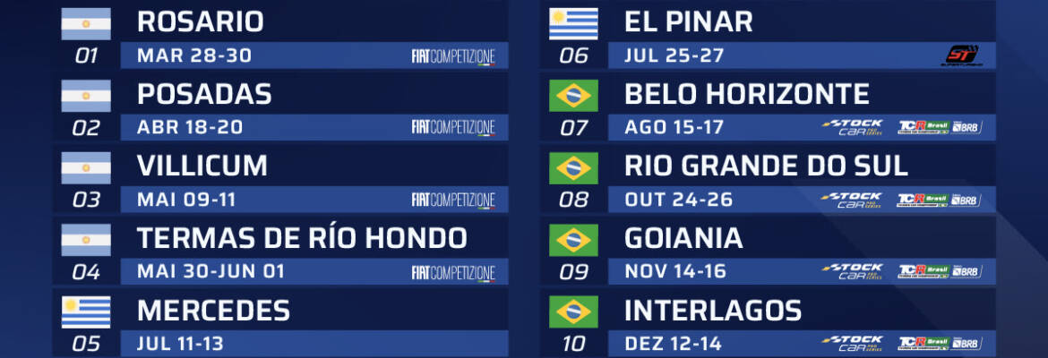O campeonato seguirá então para o Uruguai, com etapas em Mercedes (12 e 13 de julho) e El Pinar (26 e 27 de julho) e partirá para o Brasil, começando esta jornada que coincidirá também com a abertura do TCR Brasil nas ruas de Belo Horizonte no fim de semana de 16 e 17 de agosto.